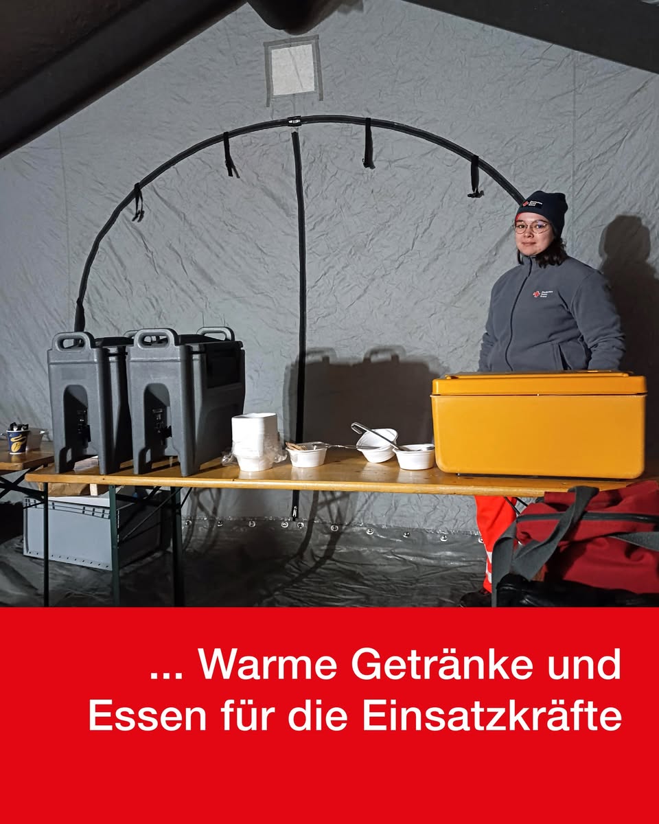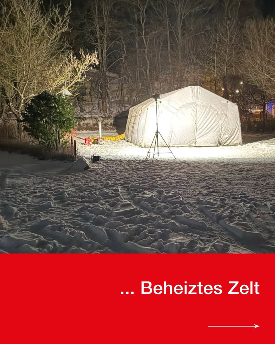 Bei erwarteten Temperaturen von bis zu –15 °C war unsere Aufgabe klar: Bereitstellung eines beheizten Zeltes, warmer Getränke sowie Essen für die Einsatzkräfte.