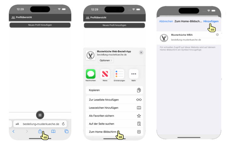 Das Icon der Web-Bestell-App ist nun auf dem Home-Bildschirm platziert. Die App kann geöffnet werden. Die Anleitung zur Installation des Schnellzugriffes kann jederzeit im Hilfebereich der Web-Bestell-App unter „Schnellzugriff“ nachgelesen werden.