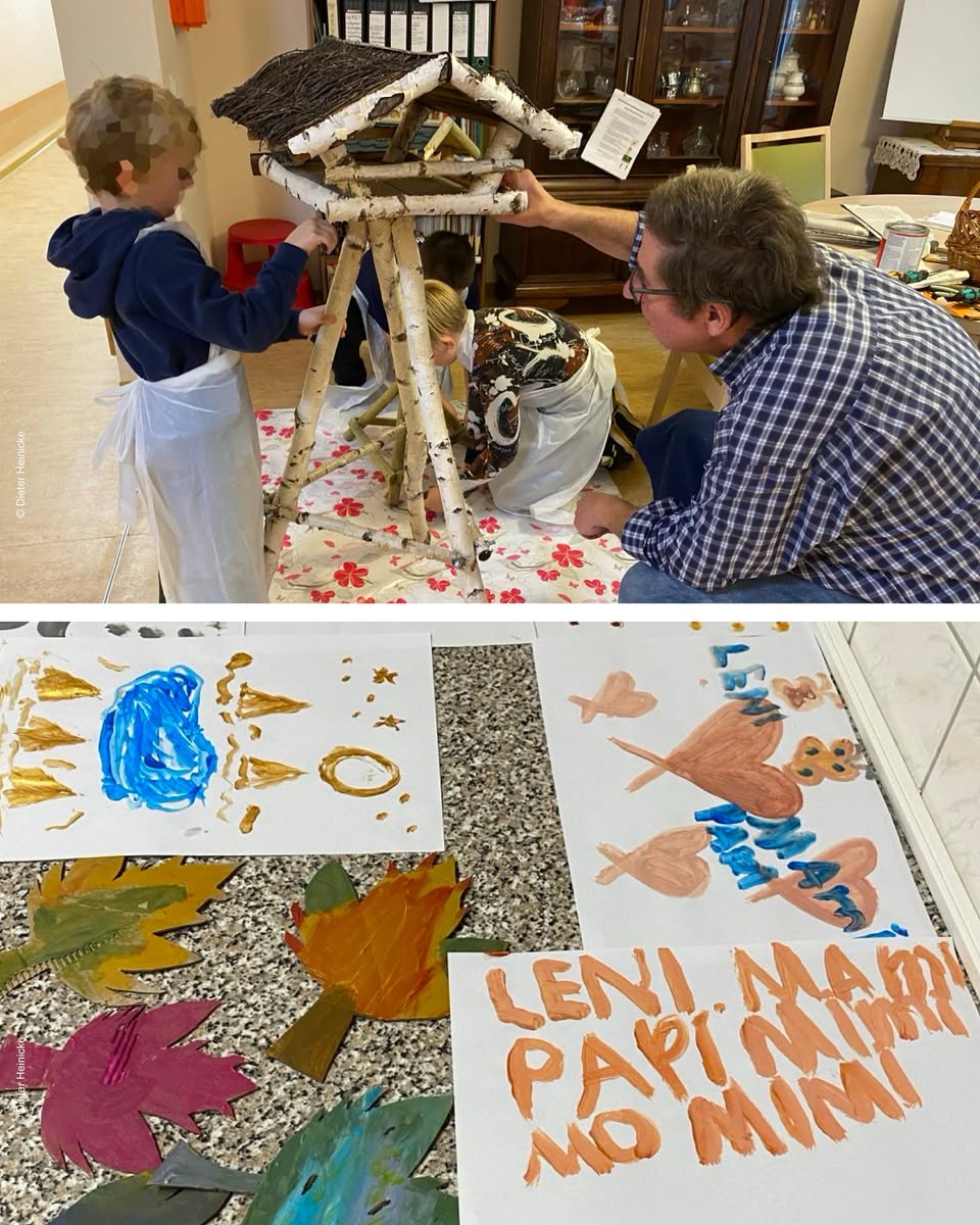 Beim Besuch in der Tagespflege wurde dann gemeinsam gemalt, gewerkelt und das Futterhaus für die Vögel winterfit gemacht.