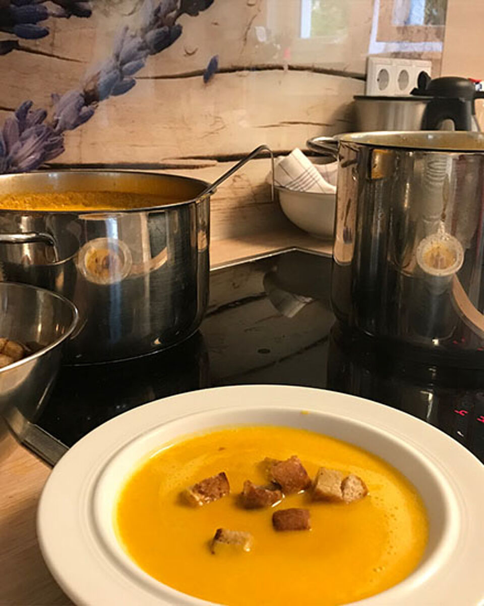 Wir haben eine herzhafte Kürbissuppe zubereitet – mit viel Herz und noch mehr Geschmack.